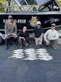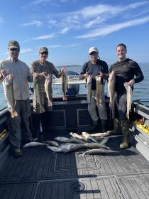 Afternoon was a smash fest on the walleye we caught over 30 and kept this Wisconsin crew their limits of very nice walleye. Absolute fantastic afternoon on the lake. Back out with same crew in the morning. We ran bandits and flicker #11 and #9 as I found some of the shad they where eating in their mouths and they where more the size of the #9 and it worked better than the #11. The old match the hatch rule applied and improved the bite. 2.0 mph did it for speed the fish where high we ran the baits back 10-16 feet what a blast watching the boards get ripped back on those short leads. Fun trip for sure.