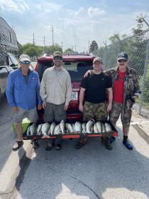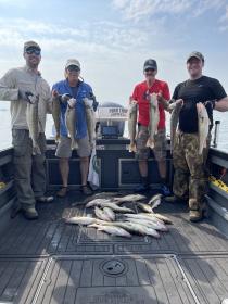 Holy smokes what a great morning fishing day 2 with Rick and crew from WI. We boated over 30 walleye this morning with some very nice size fish. We kept 30 filling their limits and mine. A lot less sheep head today thank goodness. The fish where hungry and only 5’ down what a blast. Flicker #11 and #9 with the 9 ruling the morning. 2.2 was the speed. All the fun you could have today.
