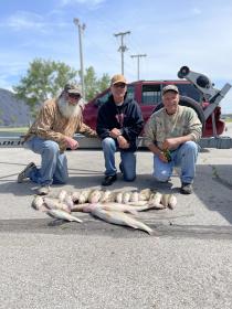 My morning trip today went well. The fish moved a little bit when I found them it was FISH ON!! We boated this Indiana crew their limits of walleye and half of mine. Great trip this morning. Flicker minnows at 2.0 did the work today 30-14 back a little deeper today had to find clean water there was some mud from the rain last night. Good morning trip.