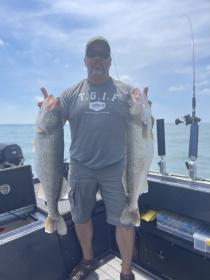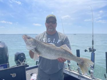 My partner David Kraut and I had a great day fishing the LEWT today pulling 32 lbs and change to pull off a 5th place finish keeping us in the hunt for team of the year. We pulled flicker minnows on the bottom in 40’ of water. Here are a couple pics of some of the nice fish we pulled today.