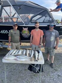 Second trip today was a grind it was hot it was flat and the fish played hard to get. We boated this crew 16 of their 18 fish and threw back at least 30 shorts this afternoon. We caught a lot of walleye they where just little bit too small. Great for the future but tough for today. Be back out of Marblehead tomorrow.