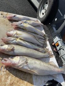 Our afternoon trip got cut a bit short from the storm that came thru. The wind picked up it got bumpy and we got wet. We managed to catch 10 walleye before throwing in the towel. Flickers and spoons 2.0 west of the islands.