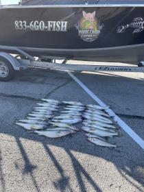 Second trip went well today with a family of 5 from Columbus mom dad and two sons and a daughter. They all reeled in fish and boated their 30 walleyes. It was a nice afternoon and a good pace for the fish bite. Flickers and bad mo spoons 2.5