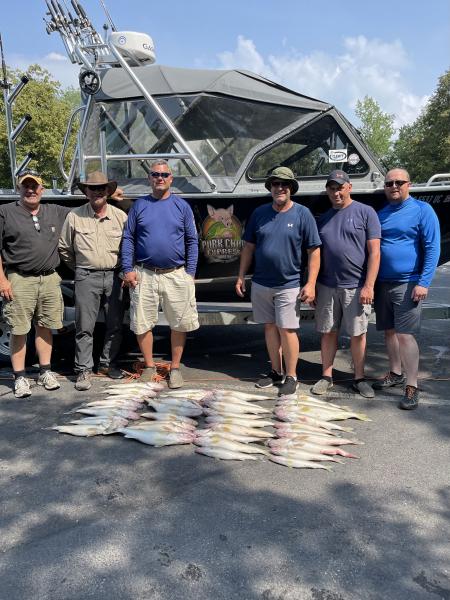 The walleye fishing today was a grind but we got it done for this WI crew. We boated them their limits and some of mine. 38 walleye hit the deck today. We had to throw the grocery store at them but we got it done. Some storms rolling they tonight who knows what that will change..We ran flickers early for the first half of the fish then that died. We switched to worms and slowed down to 1.6-1.8 and finished them up. Mayflies and bright sun slowed down the bite with the flat lake.