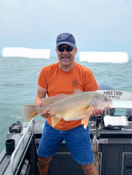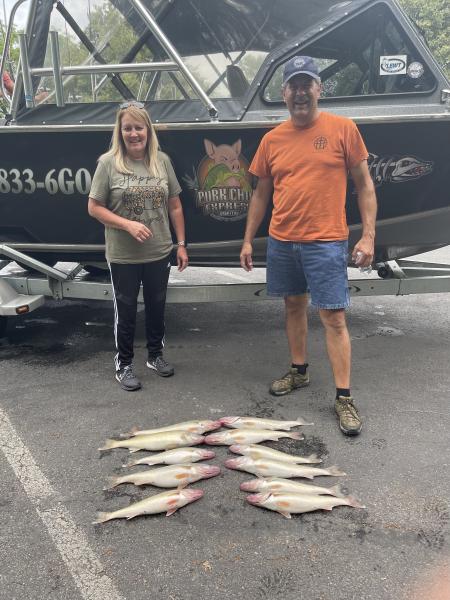 Great trip with Randy and his Mrs. from Missouri. Randy reeled in a fish ohio sheep head 27” and a fish ohio channel cat fish 26.5” and 11 nice walleye. We would have had their 12 but we had several come unbuttoned at the boat in the wave action. Good fishing and a good grade of fish. Couple days off now for some wind and weather coming thru. We fished north of Kelley’s today.