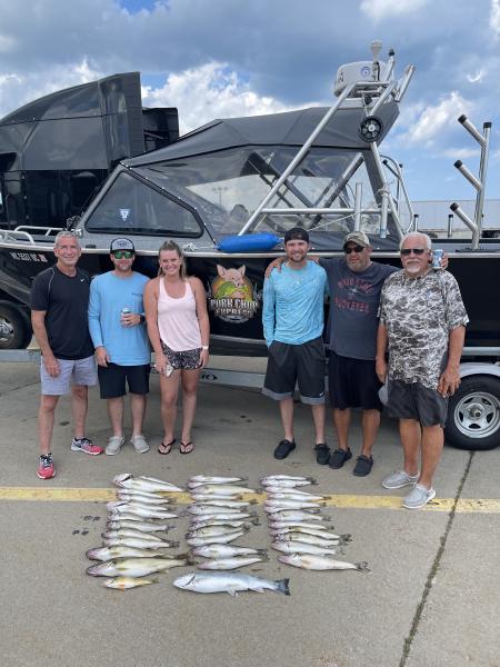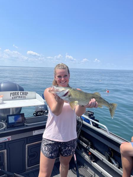 Great trip today with this Ohio crew. John brought some friends and family out for a good time today. We boated them their 36 walleye a nice steelhead and perch. Very nice lake today. We ran flicker minnows 120-80 back in 50’ of water north of Huron. 2.5 was the speed.