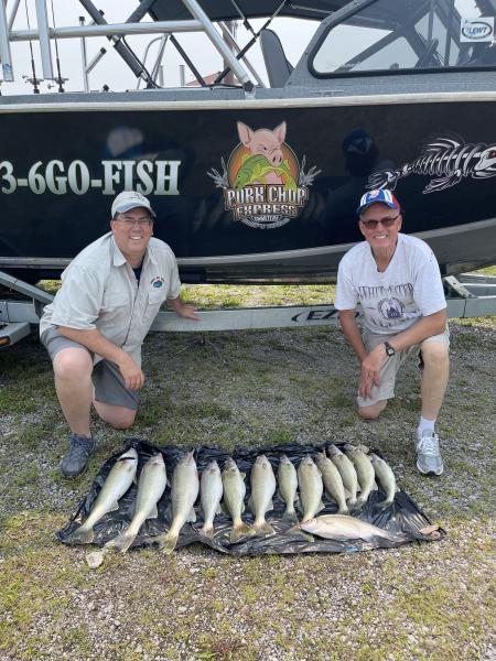 Second trip was just as good we boated over 20 and kept this crew from WI their 12 and a fish ohio white bass. With some nice sized fish. We ran bandits and flickers back 50/150 to 50/120 with 2 oz 2.5 mph some very nice fish today 50’ of water out of Lorain.