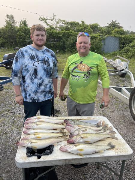 First trip was a fast one 2 limits in an hour of fishing for Tony and Cody. Great bite today they where completely inhaling the lures we fished Lorain 50’ of water flickers one side bandits the other and they all caught fish. 50/140-50/120 at 2.5 mph.