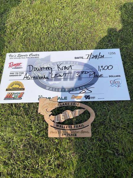 Thank you Bobby green for covering my charter today and giving me a chance to fish the LEWT tournament in Ashtabula. We where able to pull a third place finish moving us up in the team of the year rankings. We will find out later how far it moved us up. It was a tough start but we found some good fish and made it pay off. We had a long hard run back into the waves at 40 mph to not get docked for being late and just made the cut. OverAll a great tourney for us. We caught some very nice fish running flicker minnows back 50/200 with 4oz and 5oz weights. At 3.0 mph headed back to Lorain for charters tomorrow.