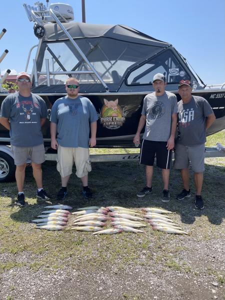 Second trip was just as good as first we boated Benny and his friends their limits of walleye out of Lorain today in just a few hours. The fishing is really good. Flickers and bandits 50/150-50/120 at 2.5.