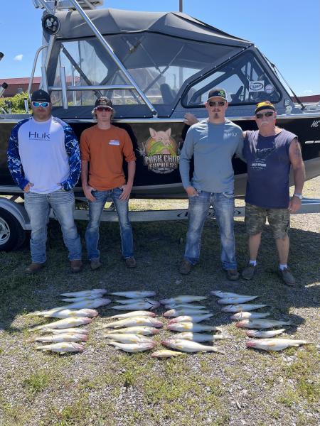 Delayed start today for this southern Ohio crew Tyler and his friends, from the wind and waves last night. We had a nice steady bite today boating 30 nice walleye and a Nice perch. The waves laid down and the temperature was perfect. Great day on the lake. Back at it in the morning. Dipsy 1/75, 3/95 flickers 50/175-50/140 at 2.3