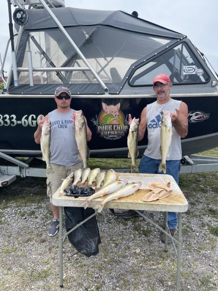 Had a nice trip today focusing on bigger fish with Dave and Dan. We kept them 12 nice fish for a fish fry tonight and threw back 24 or so fish some keepers and some shorts. We broke out the wire rods and heavier weights today as the fish where all very deep. We lost probably 12 fish coming to the boat the bite was slow but we got a nice 29” fish ohio for them. 300’ of wire with bandits 50/160 50/150 3 oz dipsy 1/100 with panther daggers.