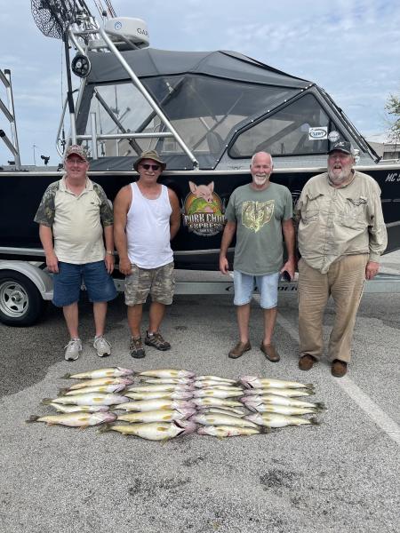 September was the worst month for weather all year I think. I did get some trips in I fished the 13th, 14th, 16th, 20th, and 30th including one perch trip that we caught 80 perch by the Toledo water intake. Same deal 5 foot or deeper water bandits and flickers weighted and dipsy divers with spoons. Here are a few pics from the month.