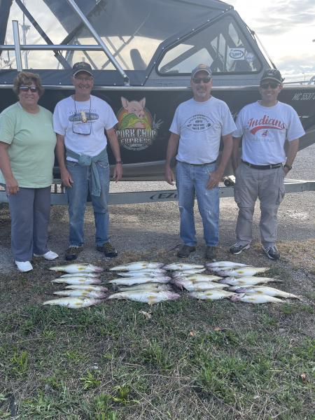 Second trip the bite slowed a little lake got flat with bright sun but we got this crew fro Norwalk ohio their nice limits of walleye. Tomorrow is up in the air we will see with the rain and thunderstorms. Bandits back 100-120 no weight and 50/100 to 50/120 did the job. Spoons didn’t go in afternoon. 2.2 mph