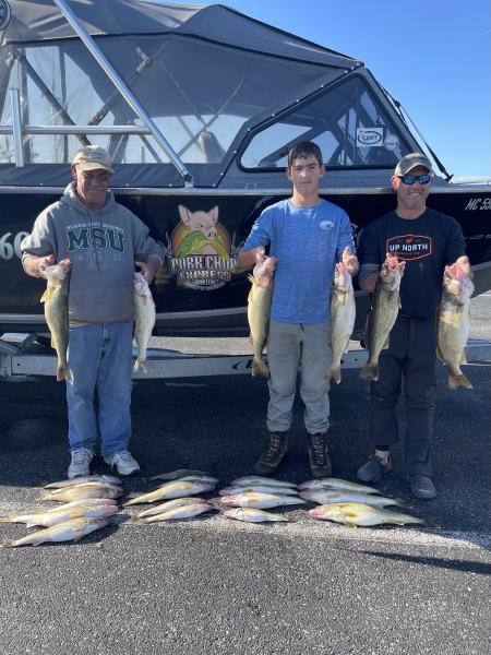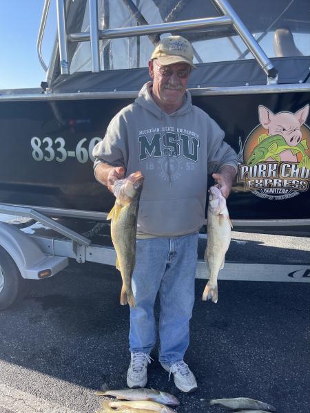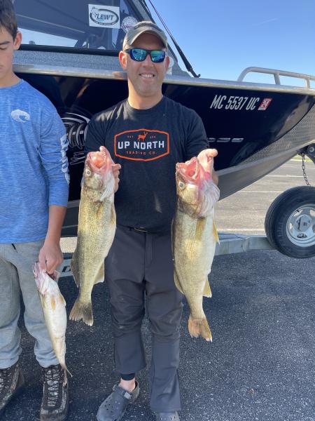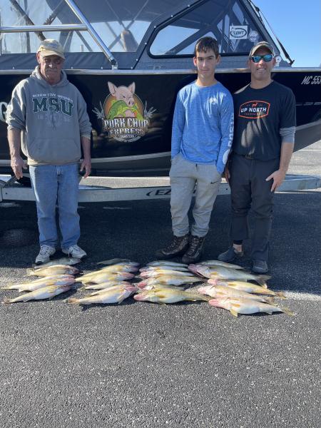 We found some very nice fish today NE of the river in 50’ of water. The fish are scattered all thru the water column. Caught on flickers and bandits back 120 and 50/150 2oz and on jets with spoons back 80. 2.0 mph did the work today. We had some very nice fish from 24-27” today mixed with some smaller males. Water was 64 degrees today still needs to cool more to bring them in.