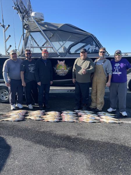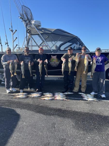 We launched at Huron at 6:45 and headed towards vermillion and set up in 38’ of water. Didn’t mark much so we moved out some and found the fish in 42’. We ran bandits back 120 and 90 unassisted and 50/100 2 oz weight and 50/80 3 oz weighted. White body baits worked best for us today and speed was 1.5-1.8 we boated 38 for this crew today with some nice fish mixed in.