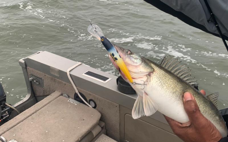 The U of M Bandit caught our first fish of the day. The OSU Bandit never caught one. So I guess it was an omen of what was about to happen. We ended up with 5 fish on the day. One on the U of M. 3 on the Glow Wonderbread, 1 on a Hot Dots Pink and 1 on a custom prototype that isn't even in my catalog yet.
