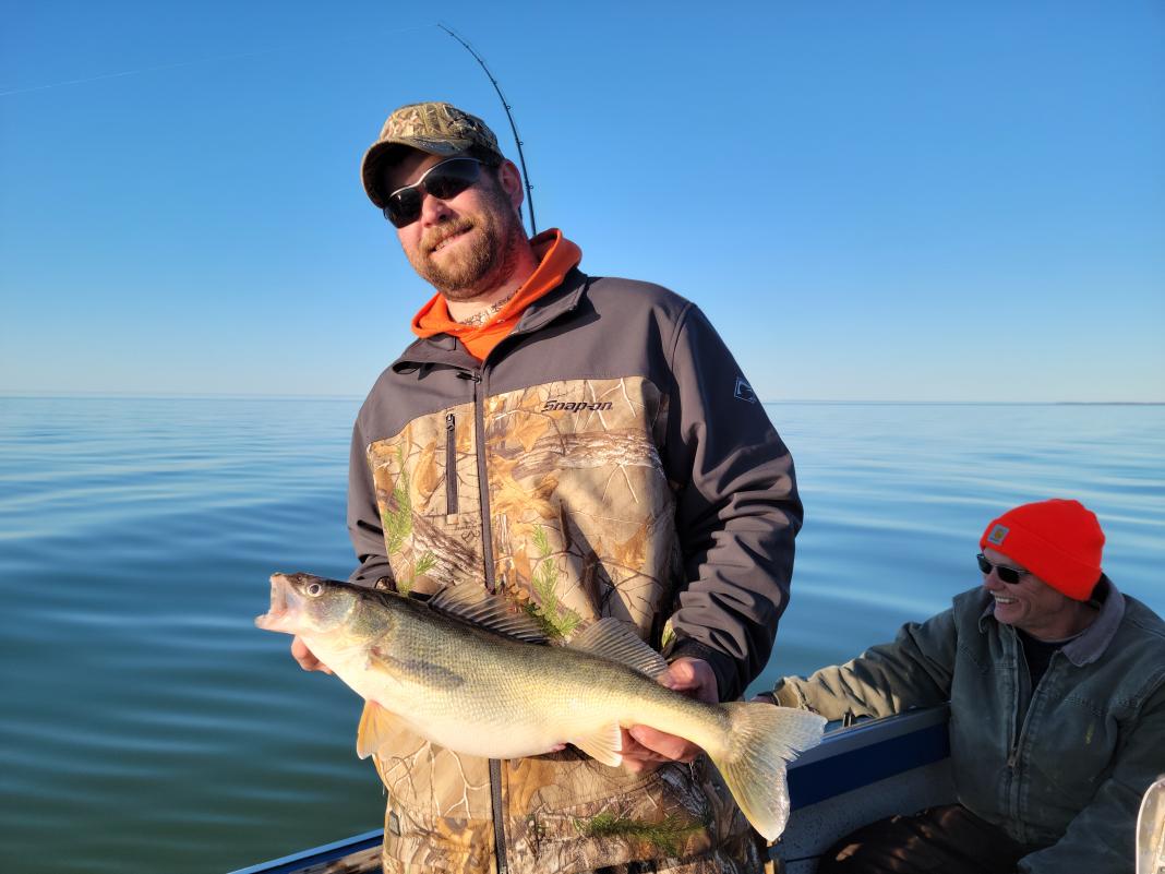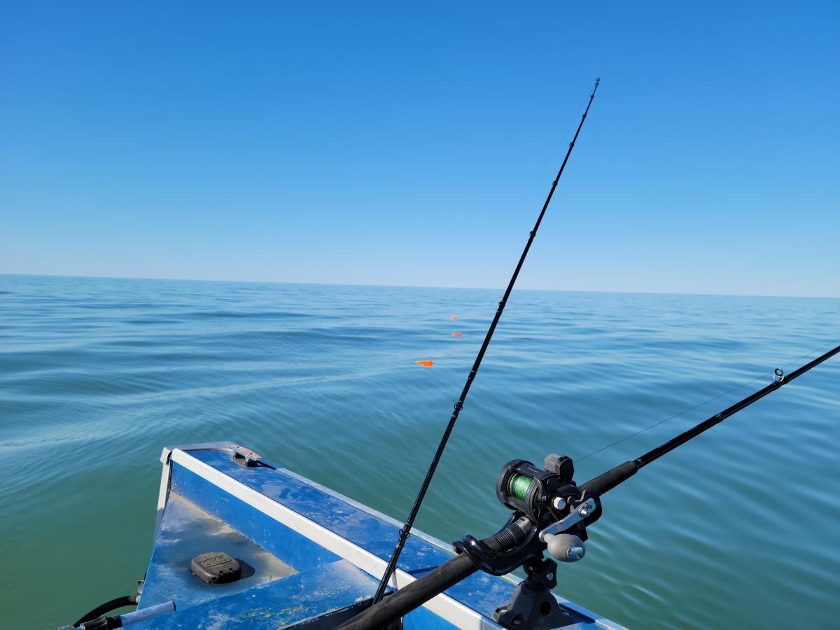 About that time a good friend of mine pulled up to get something they had left in their car. He offered to let us go with him. This was his first trip out this year and his first attempt at trolling in his own boat. We took him up on his offer, we grabbed our gear and poles and off we went. He had a tip that they were getting them at C can, so we headed that way. We set up and fished for a while, no luck and very few marks. So we picked up and headed East. About halfway to Green is. we got into some pretty good marks. We caught 5 on blue chrome and another on a purple bandit. 60 back, 1.3 1.5 ish. We picked up some nice fish, 24 to 27 inches, with eggs. We fished till a half hour, till sunset and headed in. We met some guys at the ramp that said it was on fire halfway between Kelly's and Catawba. They ad gotten a 3 man limit.