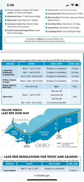 not sure if the screenshot attached or not but it does say in the regs that all statewide regulations apply to Ohio waters of Lake Erie except below. Therefore I believe there is a limit.