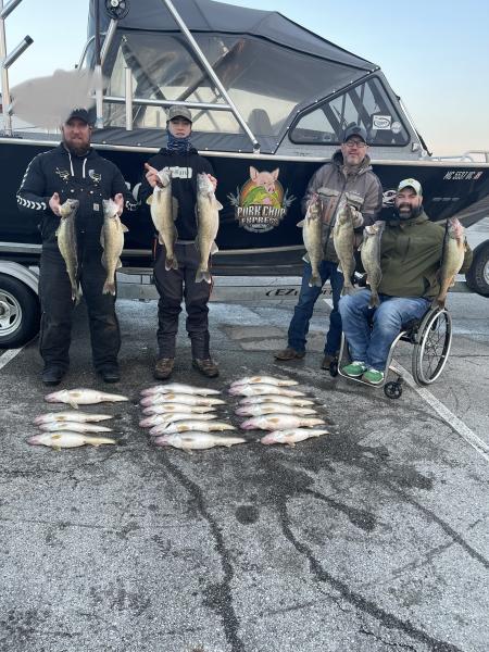 Great second trip today an absolute slob fest for this MI crew. We had to work to stay on them they moved around on us today but it worked out well. Limits for the whole crew. Great fishing. Mostly p10’s 1.3 mph Marvin glass green purple with orange belly. 50/50, 45/45, 40/40 fish where deeper this afternoon.