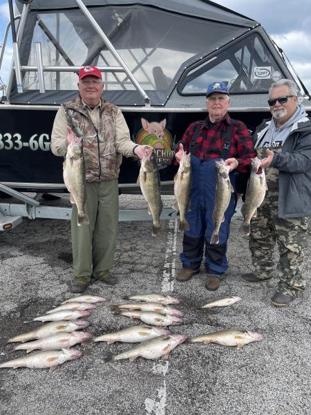Second and final trip for my Missouri crew. We boated them their limits of nice walleye anchored by another fish Ohio and got them on the books for another round next March. This crew is fun to have on the boat lots of laughs..Same program as this morning really good fishing starting to catch some males mixed in the spawn for these fish is near.