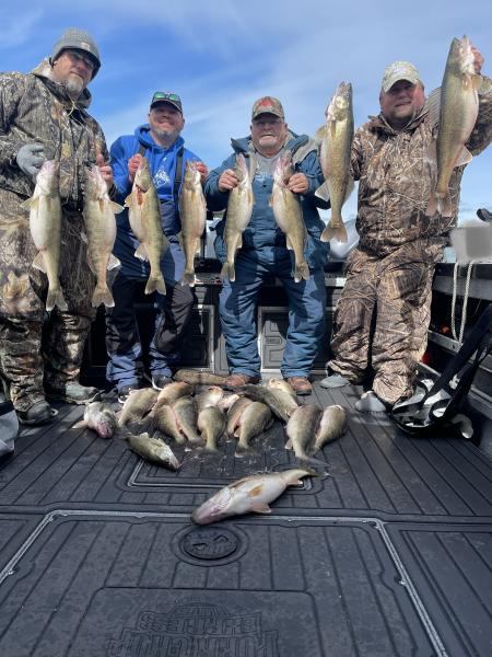 Good morning trip today. Had to find a new school of fish to work and it was tough in the waves but we made it work out. We boated the Kansas crew their limits of nice walleye and I reeled in 3 too. Great morning trip for the conditions. We ran bandits 120-80 back we fished 50’ of water in the vermillion area.