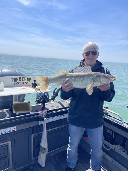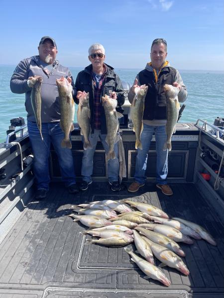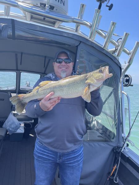 Great trip on Lake Erie today with this Indiana and Kentucky crew. We boated their limits of walleye and I reeled in mine too. Topped off with a pair of 29” spawned out females for the father and son. It was beautiful out there today what a treat. Huron 40’ bandits chrome blue 90-70 back p10’s chrome blue 40/40 - 30/30 1.7 mph