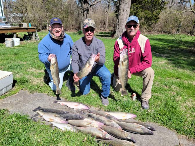 It wasn't long till we had our 1st fish. The guys were pretty excited to be catching walleyes. It was a slow pick through the day, but we did have a triple and 2 doubles. We caught fish on blue chrome, clown dhj, black wonder bread, anti-freeze, cotton candy (clown bandit), we had multiple lures of these out. We found that 45 to 55 back did best. They were a really nice grade of fish again this time. We pretty much just mirrored the shore line due south of the monument, and east in 30 fOW. Due to the wind blowing around we did a lot of changing direction. (S curves) the fish seemed to hit on the change. We fished from 730 to 230. We needed 1 for a 3 man limit and we got another triple.