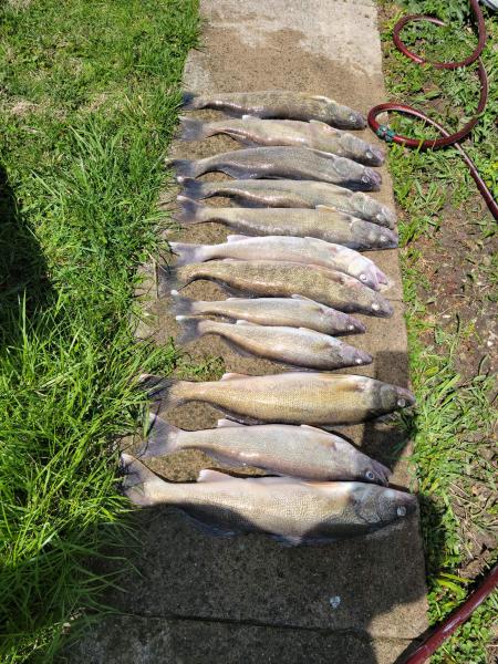 It seems like we haven't been able to catch a break , and have good weather on the weekend. Today was that day. We got to the Catawba ramp at 930 and was told that the park was full by the ranger. We told him, "great" we're not parking in the park. So he let us go ahead and put the boat in. We dropped the boat and my buddy drove back to the house. I went down the way and picked him up. While we were ramping, one of the boats coming in, told us it was on fire at the cans. So we headed to F can. We started to trolling NNE from F can. We had only gone a couple hundred yards when we picked up our first fish. In the next 1/4 mile we picked up 3 more. So we turned around and worked the same area, over and over. It took 3 and a half hours to get out 2 man limit.