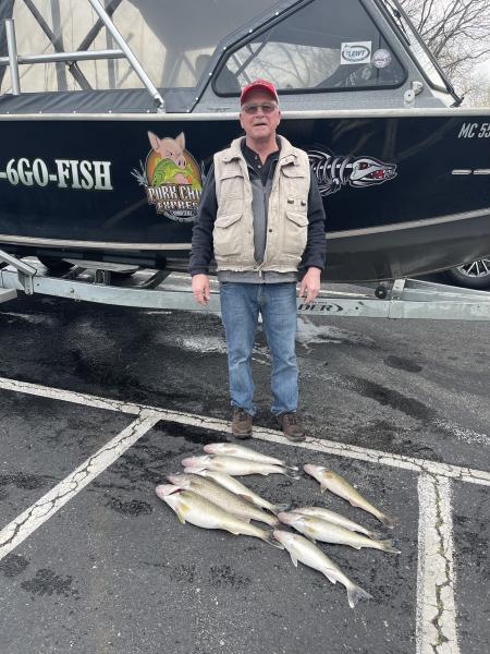 I spent a really nice couple hours with Mike from WI on the lake today. We boated him his limit of walleye and I reeled in 3 too. The lake laid down and got nice for a bit this afternoon. Too bad it isn’t going to last…bandits back 80-30 1.8 24’ of water off Catawba