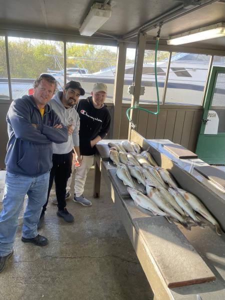 Second trip went well a little slower as a lot of boats showed up in my location I had to myself in the morning. We got limits for these boys from Indiana we ran 48 walleye thru the pork chop express today and let 6 of them swim for another day. We started catching sheep head and white bass today as well as a catfish. Fish where deeper today. Great day to fish…Bandits 50+30 and 100-120 back 1.8-2.0 got it done. North of Catawba