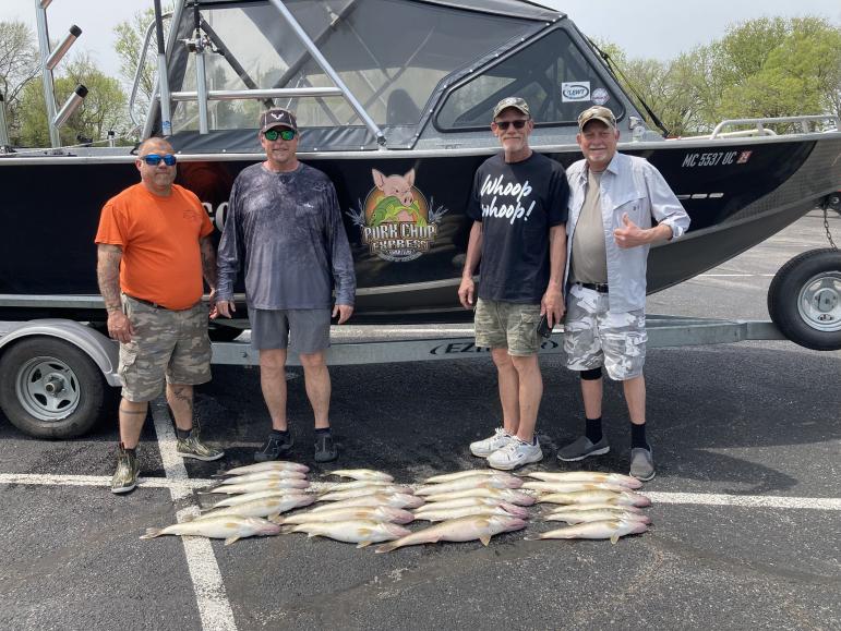 Wow what an awesome bite on our second trip today. The walleye are chomping on the lake today. We boated this crew from Illinois their limits of 24 nice walleye. Great trip and they booked two days for next April. Was nice to finally have a stable bite out there what a great day with the carp king and the gang!!! Bandits 80-50 back 1.8 mph north of Catawba