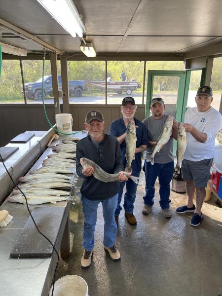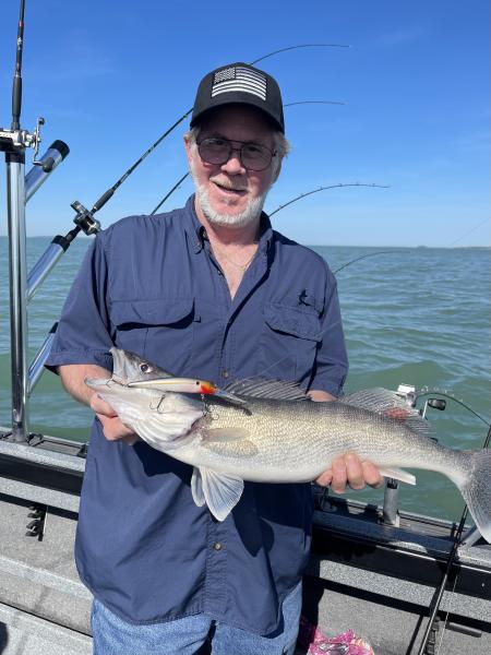 Afternoon trip went well we boated this crew from Indiana their 24 walleye. It was a steady bite today just had to keep picking. The bloody shad bait worked well today by D.F. Custom Lures, LLC Bandits 80-60 back 2.0-2.4 mph got it done west of Catawba.