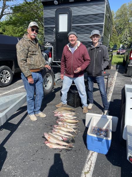 Great morning on Lake Erie with this crew from Columbus. Bob brought his grandson for his first walleye trip. We got them their 18 walleye and I reeled in a couple too. Great morning on the lake. Had to hide from the wind today. Fished bandits and spoons south passage. 2.0 mphAttachment 7903