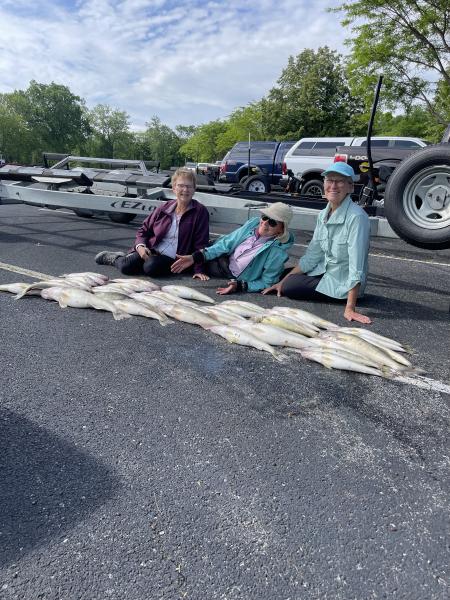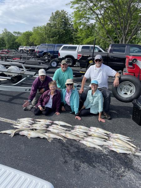 Great morning trip today 7 man limit by 9:45 am great bite 3 first time ladies on board they did a great job I reeled in mine today too. Jet 40’s back 30-45 and dipsy got a few on bandits taco salad and humble bee and black headed wonder bread. 1.8-2.4 bounced around in the waves. Thanks for coming back again Rod and crew.