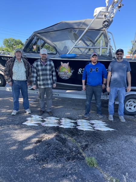 Wow is all I can say 30 fish in hour and half this morning what a fishery we have. This Indiana crew did ok in the big waves reeling in their limits and I reeled in mine too. What a morning back out in a few for round 2. Bandits and flicker 11’s did the work 120-40 back color has not mattered these fish are feeding period.