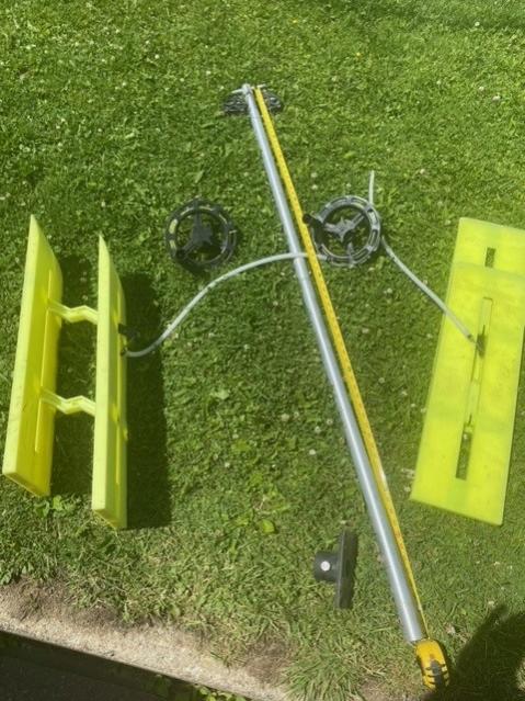 2 Walker(?) 27", collapsible, plastic planer boards with shockers