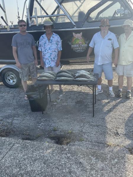 Unbelievable fishing this morning for these Ohio boys. We had their limits and Caleb and I reeled in ours too in no time at all today and we are glad to beat the heat wave today. 6 limits headed to the fryer. Bandits 120-80 back dipsy 0-40, 1-50, 3-60 3.0 mph 40’ of water off Lorain.
