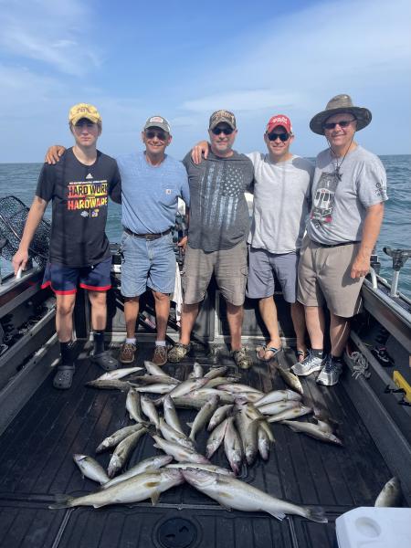Great morning trip today with this crew from IL and VA. We boated them their 30 and Caleb and I reeled in our 12 too nice fish today. Bandits 140-80 back dipsy 0-35, 1-50, 3-60 speed 3.0 43’ of water off Lorain