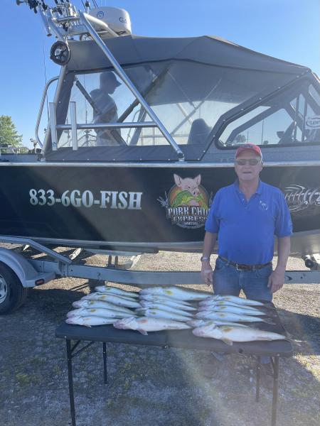Very good bite this morning for Mike from WI he reeled in his limit of walleye and Caleb and I did too. Grade of fish is still good. Nice morning but the waves are building a little today.
