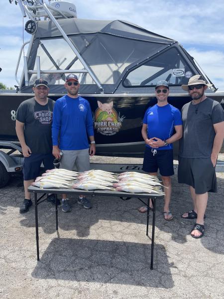 Second trip today was very good bite. We boated this crew from Ohio their limits of walleye for a fish fry they are having. It was all dipsy and spoon bite today. Fish are deep eating hatching bugs. Back at it in The morning to try and beat the rain. Dipsy 0-70, 1.5-100, 3.5-130 speed is 2.5 mph 40-50’ of water off Lorain.