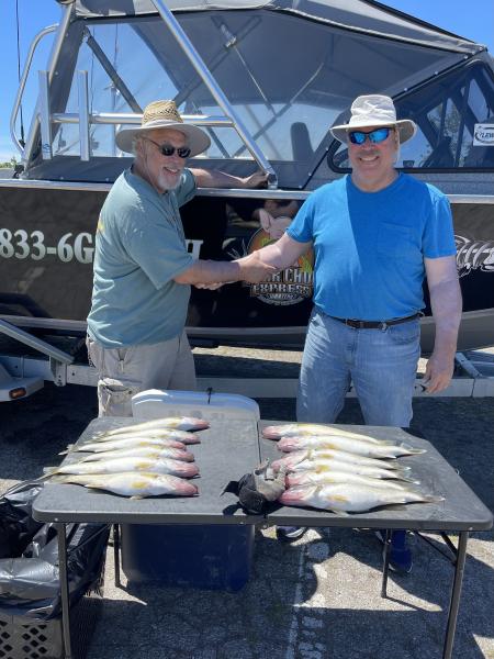 June 28 Morning trip today was really good. We boated this crew from Bryan ohio their limits of nice fish including a fish Ohio. Caleb and I reeled in our limits too. The dipsy bite is amazing we had to run them on the bottom this morning. Lorain is good fishing 0-70, 1.5-100, 3.5-130 speed 2.8 mi stingers