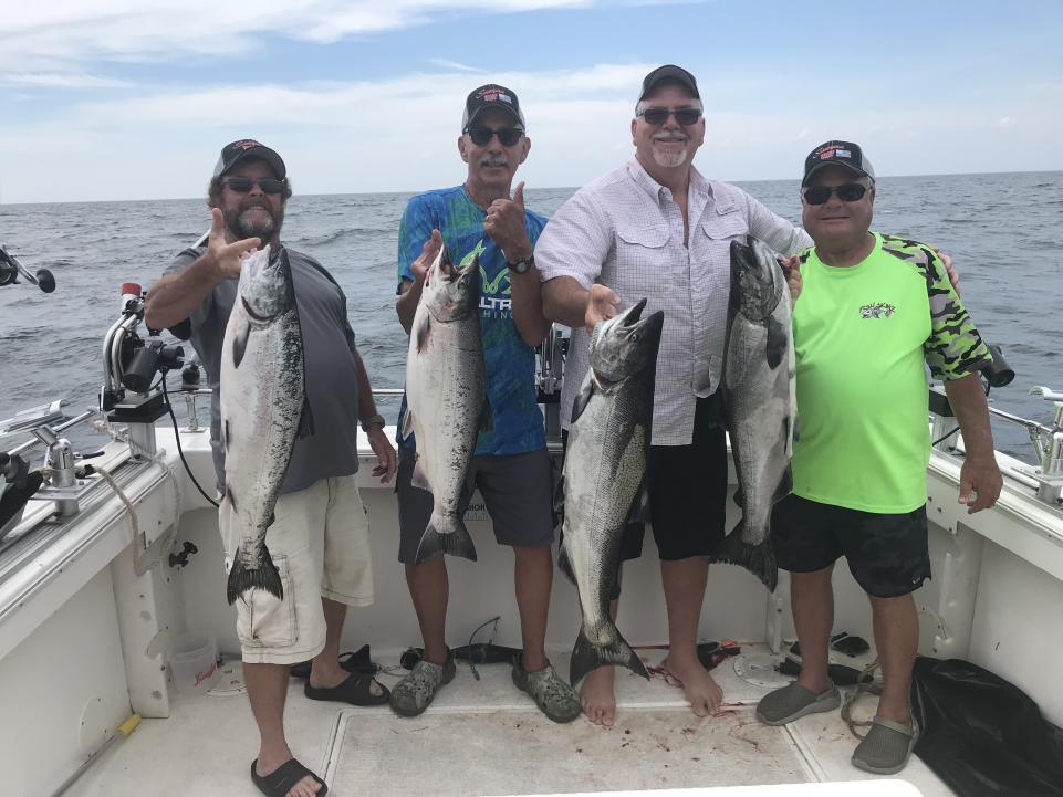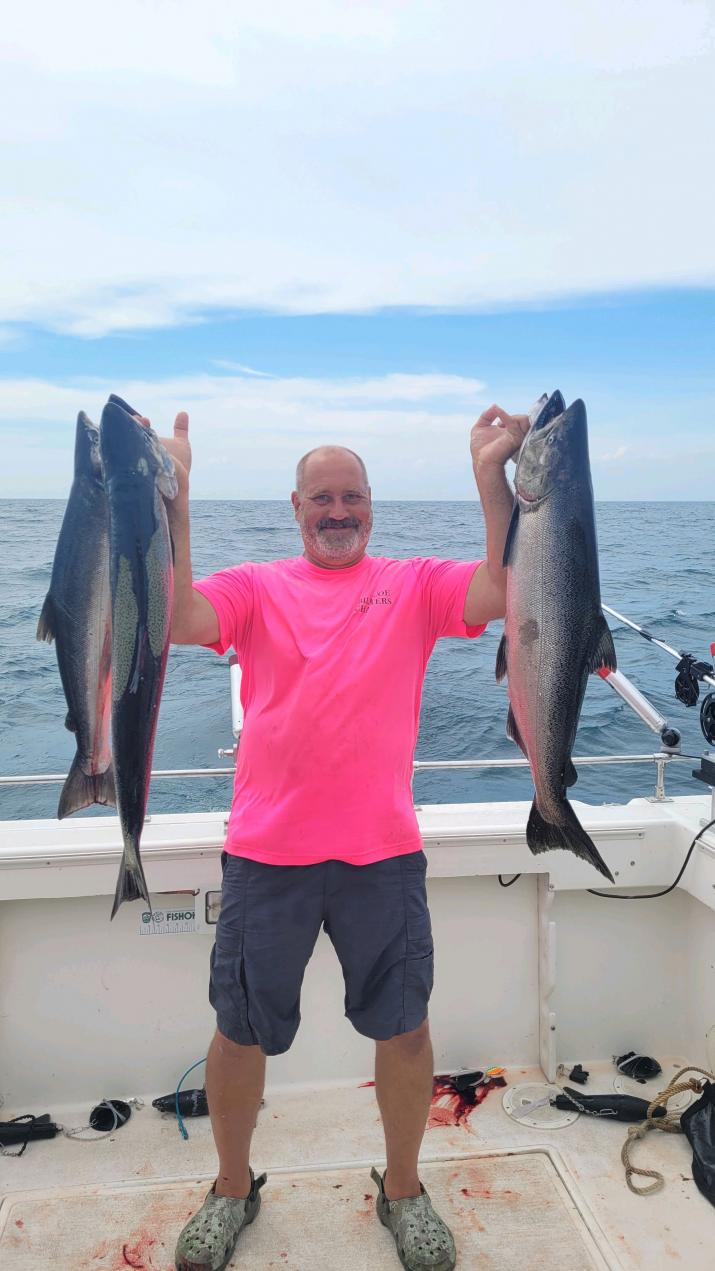 boat headed to olcott NY on 7/28/22 to due some salmon trips there just got back yesterday . the big kings were scarce this year but all in all fishing was good had to run out aways for them. ran into capt Sam there he was giving the walleye a break to if anyone interested in a trip next season give me a call Todd billly joe charters 419-467-4761