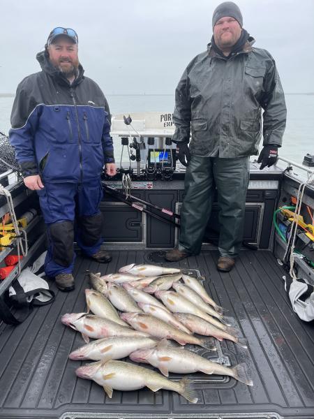 First few weeks of the season have been great we have been catching fish from vermillion to the islands depending on wind and mud. Speed has been 1.0-1.5 p-10’s and bandits have been the baits. Mostly white body baits have been working best but some days chrome. Stained water is producing the best. Clean water seems to be absent of fish and too muddy you can’t catch them. It has been good so far and there are lots of fish to be caught. Good luck and tight lines to you all.