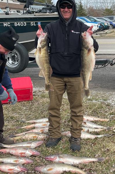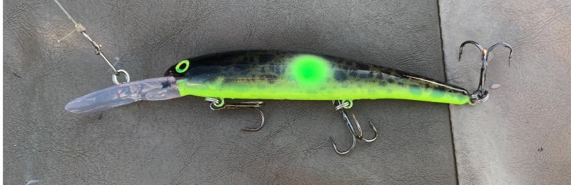 Made it out Friday out of a MI port and we smoked' em. One of the best trips ever in terms of size and quantity in recent years. We ended up with 33 eyes, only 1 of them was under 5 lbs. Most were 6-8 lbs. Many had the baits inhaled. We were fishing in 22-26 fow, 8-9 feet down. Bandits (my customs) and P-10s mixed. Early the P-10s were better, later in the day it shifted to Bandits. Our best pattern by a wide margin was a new prototype that I have since put into the catalog. In fact, I went home and started immediately painting up another dozen of them because my two fishing partners each wanted 2, as well as 2 of my clients that followed us over there in their boat. They wanted 2.