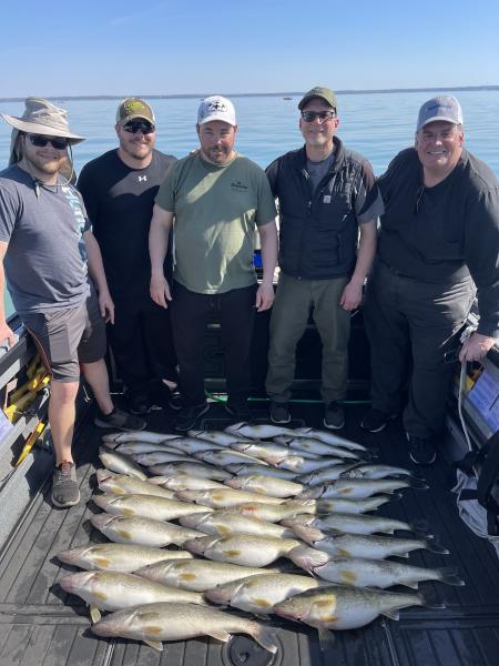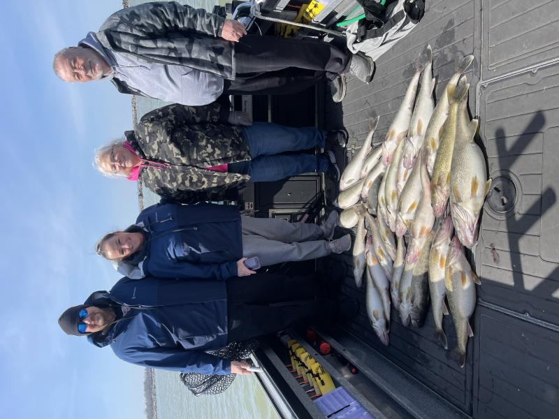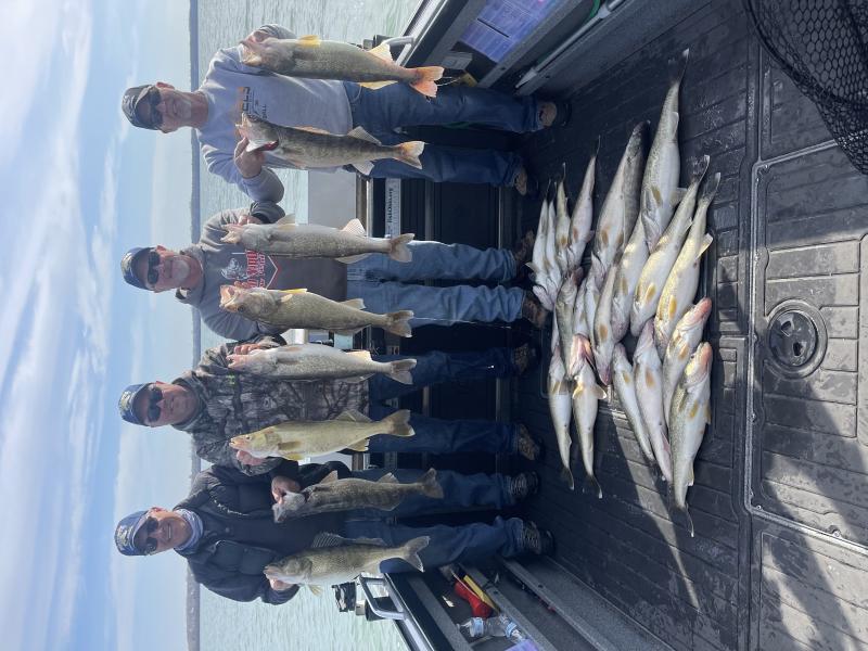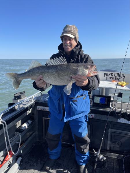 It has been a great month of fishing for me. We have been fairly successful and have been fishing from Huron to Lorain. The muddy water conditions around the islands have just flat made for not great fishing. We have been out most everyday accept for a few blow days had a few days when the spawn started that where fairly tough fishing but once it was in gear the fish turned on great. I did catch my personal best walleye it was 32” and weighed 14 pounds a true Lake Erie giant. The fish have been very high in the water column and we have been using p10’s and bandit lures. The p10’s have been fantastic this year and have been fantastic producers since the water has stayed so cold so long. We have also had great success with husky jerks this spring there were days that did the work. Here are a few photos of the past month.