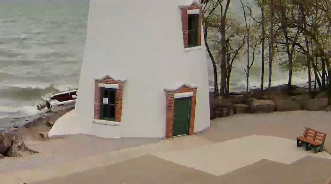 Happened to see this yesterday while checking some Lake webcams. Boat on the rocks at the Marblehead Lighthouse.