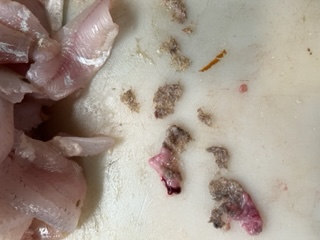 cleaned the 7-25 perch ~ gut pile says they are eating a lot of spiny fleas.