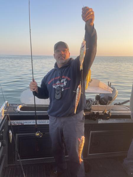 Been a while since I posted on here so a little catch up time. I spent the month of august in NY salmon chartering on Lake Ontario and we had a ball with a very successful season up there. I returned to Lake Erie and started perch fishing out of meinke fishing between a can and the Toledo light. The fishing there has been fantastic the whole month. We have had 120 and 180 perch trips on several occasions the bite has been fly rigs with a bottom hook added the whole month and cutting minnows into 3-4 hunks and just putting a small piece on for bait. It seems to simulate the gobs of water fleas they are spitting up when you catch them. We have not used a whole minnow the entire month. I also went on an antelope hunting trip with some customers from South Dakota and I harvested my first Antelope with a bow. Been a great couple months. I will begin walleye fishing again next week between Huron and Cleveland through the end of the season. I still have some open days in October and November if anyone wants a trip give me call. Tight lines to all.