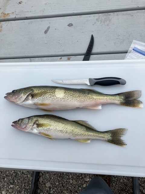 Did 2 drifts just north of the red can. Picked up 1 walleye on each drift and a handful of sheep each drift. She loves "sheepyheads" so she had a ton of fun! Both eyes came on the same boring stuff they tend to hit for me for some reason! 1/2 ounce jig head, 3" white curly tail, tipped with a little worm. Set that rod up to drag/bounce bottom while I cast a second rod with erie dearie or harness. Chose Dearie this time out of laziness and the Dearie caught all the sheep.